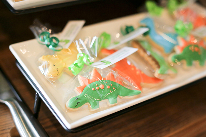 The cutest dinosaur cookies ever! I always order my custom cookies from April’s Sweet Creations. They are always perfect and they taste great, too.