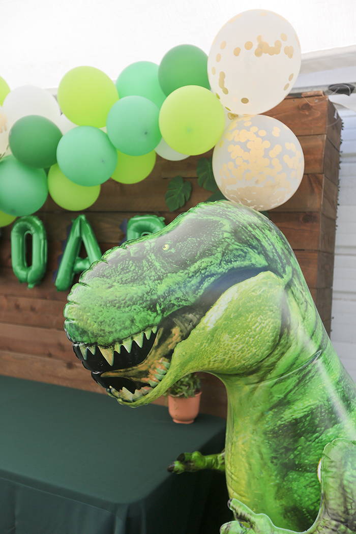 We purchased several inflatable dinosaurs for the party but my favorite was this 6ft t-rex at the entrance!