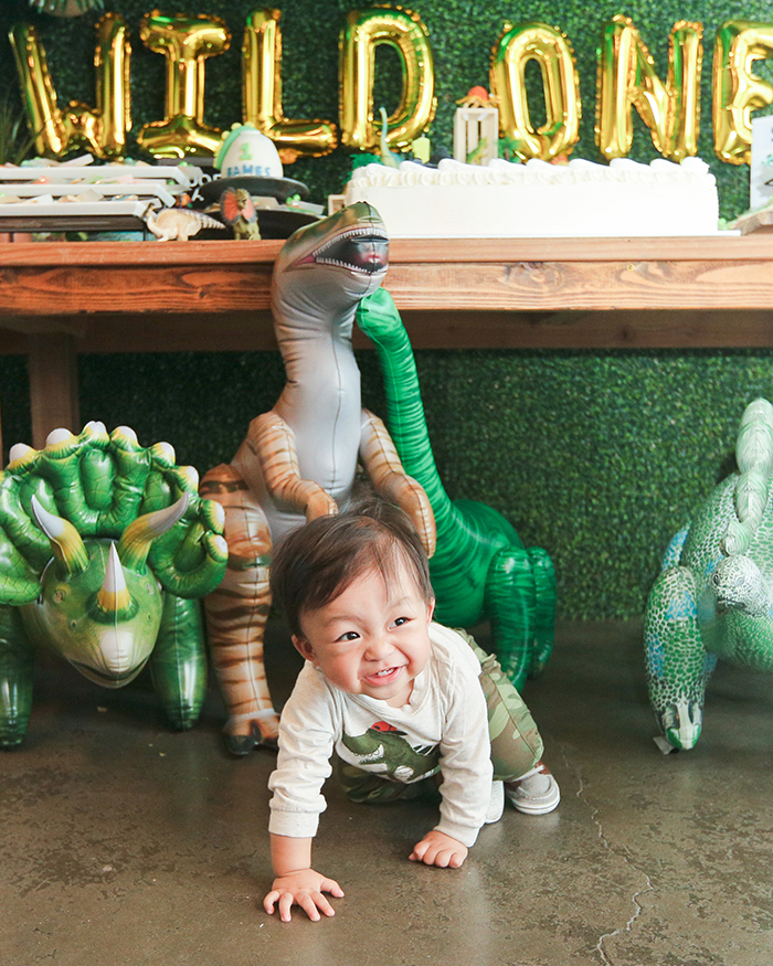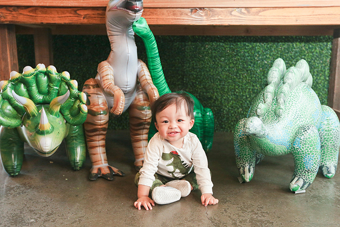 Can never go wrong with these balloons!! We had tons of wall space at the venue, and it was the perfect blank canvas to decorate with. You can’t really tell in the photo, but to the left of those balloons, we projected the Land Before Time movie during the party.